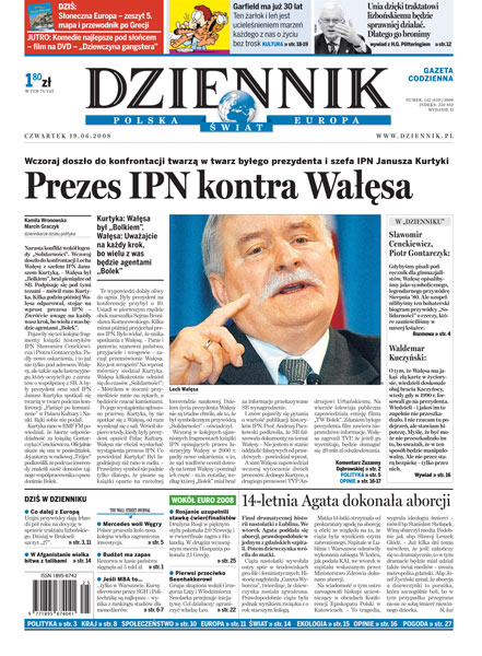 Narasta konflikt wokół Lecha Wałęsy - konfrontacja z szefem IPN, Januszem Kurtyką, zapis rozmowy Michała Karnowskiego z autorami książki o byłym prezydencie i wywiad z Waldemarem Kuczyńskim; szczyt UE - konsekwencje referendum w Irlandii, postulaty Polski; CBA zatrzymało onkologa podejrzanego o korupcję; raport WHO: polskie nastolatki żyją zdrowiej niż ich rówieśnicy z Europy Zachodniej; analizy polskiej przegranej na Euro 2008; Garfield, bohater kultowego komiksu, obchodzi 30. urodziny.