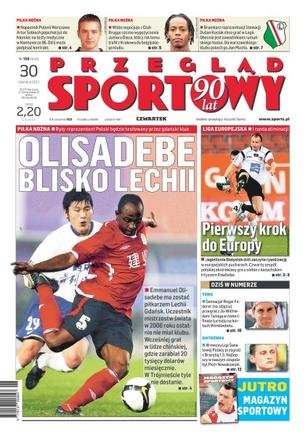 Emmanuel Olisadebe blisko Lechii; pierwszy krok Jagiellonii Białystok do Europy; Roger Federer przegrał z Jo-Wilfriedem Tsongą w ćwierćfinale turnieju na kortach Wimbledonu; Polacy przegrali z Brazylią 1-3 w meczu Ligi Światowej; Artur Sobiech pojechał na testy medyczne do Niemiec – dzisiaj może podpisać kontrakt; Wisła negocjuje wypożyczenie Juniora Diaza, który rok temu trafił do belgijskiego Club Brugge; bramkarz reprezentacji Słowacji Dusan Kuciak chce grać w Legii Warszawa.