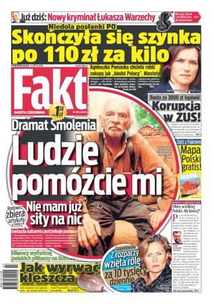 Dramat Bohdana Smolenia – gwiazda kabaretu potrzebuje pomocy; niedola posłanki PO – skończyła się szynka po 110 zł za kilo; korupcja w ZUS; Szapołowska z rozpaczy wzięła rolę za 10 tysięcy dziennie; jak wyrwać kleszcza; Niemcy wyćwiczą polskich piłkarzy na Euro.