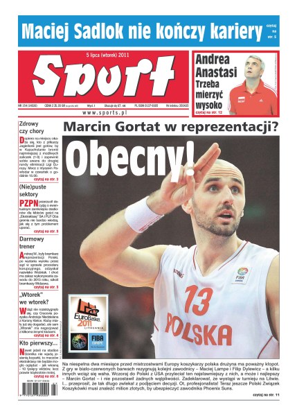zarzutem ustawiania meczów; będę grał w kadrze - zapewnił Marcin Gortat, środkowy Phoenix Suns; jeżeli Piotr Gruszka dobrą postawą na treningach przekona do siebie włoskiego selekcjonera, ma szansę wystąpić w zbliżających się finałach Ligi Światowej; Dijana Djoković, po triumfie syna w wielkoszlemowym turnieju na trawiastych kortach w Wimbledonie, obwieściła początek nowej ery w męskim tenisie; David Haye pragnie rewanżu z Władimirem Kliczką.