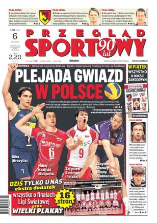 Eugen Polanski zadebiutuje w naszej reprezentacji prawdopodobnie we wrześniu – jeśli formalności nie będą się przeciągać, wkrótce ma dostać polski paszport; Śląsk Wrocław może mieć wreszcie łowcę bramek z prawdziwego zdarzenia; po raz trzeci Polska jest gospodarzem finałów Ligi Światowej – czy zdobędzie pierwszy medal; rusza karuzela transferowa w Formule 1, dla Roberta Kubicy miejsce będzie – zapewnia menedżer Polaka Daniele Morelli; Serena Williams po Wimbledonie wylądowała na 175. miejscu w światowym rankingu; Alberto Contador już szaleje na trasie – wczoraj Hiszpan przyspieszył i w końcówce 4. etapu błyskawicznie rozerwał peleton.