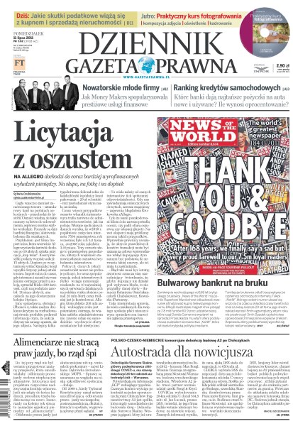 Na Allegro dochodzi do coraz bardziej wyrafinowanych wyłudzeń pieniędzy, na słupa, na fotkę i na dopisek; jak Money Makers spopularyzowała prestiżowe usługi finansowe; które banki dają najtańsze pożyczki na auta nowe i używane, ile wynosi oprocentowanie; Dolnośląskie Surowce Skalne, główny podwykonawca chińskiego COVEC-u, ma szansę dokończyć 20-km odcinek autostrady Łódź–Warszawa.