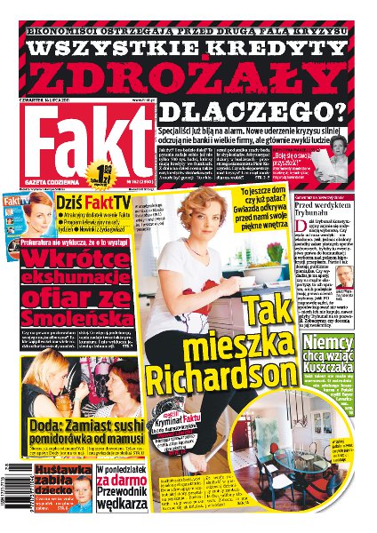 Ekonomiści przestrzegają przed drugą falą kryzysu – dlaczego zdrożały wszystkie kredyty; prokuratura nie wyklucza, że wystąpi o ekshumację ofiar ze Smoleńska; absurdy polskiej prezydencji; jak mieszka Monika Richardson; Doda: zamiast sushi pomidorówka od mamusi; huśtawka zabiła dziecko; wywiad z Anną Jurksztowicz; Niemcy chcą wziąć Kuszczaka; Wisła Kraków wygrała ze Skonto Ryga.