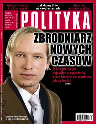 Jeden człowiek zabił prawie sto osób, sparaliżował rzad, wstrząsnął krajem i wystraszył pół świata - podwójny zamach w Norwegii to zbrodnia nowych czasów, indywidualny akt terroru na niespotykana skale; kupnem telewizji TVN zainteresowanych jest kilku wielkich graczy światowych; jak spółka Skarbu Państwa Textilimpex robiła interesy z rosyjska Propaganda; jak rolnicy oszukują Unię Europejską; jak wygląda koniec ery Silvio Berlusconiego; jak dynastia Grimaldich od pokoleń zarabia na próżności bogaczy; Amy Winehouse żyła krótko, zostawiła po sobie skromny ilościowo dorobek, ale wielka legendę; jastrząb, jak wszystkie polskie ptaki szponiaste, podlega ścisłej ochronie - w rzeczywistości jest tępiony jak kraj długi i szeroki.