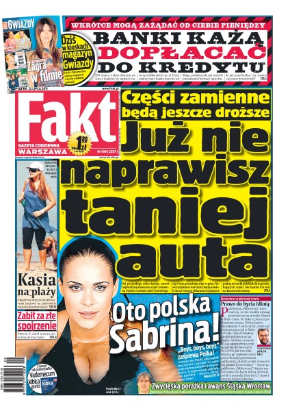 Bank, w którym masz zaciągnięty kredyt, już wkrótce może zapukać do twoich drzwi i zażądać dodatkowych opłat; części zamienne do aut będą coraz droższe; Katarzyna Skrzynecka na plażowych zawodach kulturystów; Śląsk Wrocław przegrał z Dundee United 3:2, ale awansował do kolej fazy eliminacji Ligi Europy.