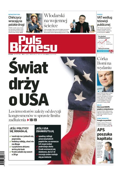 Świat boi się bankructwa USA; Chińczycy nie rezygnują z walki o kontrakty nad Wisłą; Włodarski na wojennej ścieżce z byłymi pracownikami, właścicielami Oshee; VAT według telewizji publicznej; Rabat Service, córka Bomi, za miesiąc wejdzie na NewConnect; były szef KGHM opowiedział się po stronie związkowców; Imagis szykuje się do debiutu na parkiet; APS Energia poszuka kapitału, by podbić Rosję.