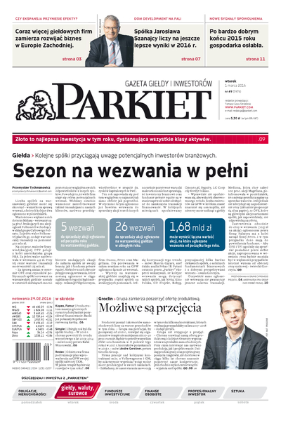 Największy w Polsce newsroom gospodarczy zbiera, analizuje i zgłębia dla Państwa najważniejsze informacje ze świata finansów. Codzienne wydanie „Parkietu”, sześć dni w tygodniu, to kilkadziesiąt artykułów o emitentach, instytucjach finansowych, gospodarce. To również opinie, felietony i wywiady z najważniejszymi ludźmi krajowej i globalnej finansjery.