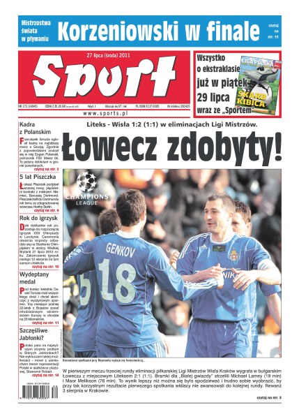 Wisła Kraków pokonała Liteks Łowecz 2-1 w eliminacjach ligi Mistrzów; mistrzostwa świata w pływaniu – Korzeniowski w finale; Eugen Polanski w kadrze Franciszka Smudy; Łukasz Piszczek podpisał pięcioletni kontrakt z Borussią Dortmund; dziś dokładnie rok pozostaje do rozpoczęcia Igrzysk XXX Olimpiady w Londynie; Dawid Tomala został młodzieżowym wicemistrzem Europy w chodzie na 20 kilometrów.