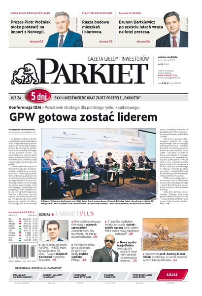 Największy w Polsce newsroom gospodarczy zbiera, analizuje i zgłębia dla Państwa najważniejsze informacje ze świata finansów. Codzienne wydanie „Parkietu”, sześć dni w tygodniu, to kilkadziesiąt artykułów o emitentach, instytucjach finansowych, gospodarce. To również opinie, felietony i wywiady z najważniejszymi ludźmi krajowej i globalnej finansjery.