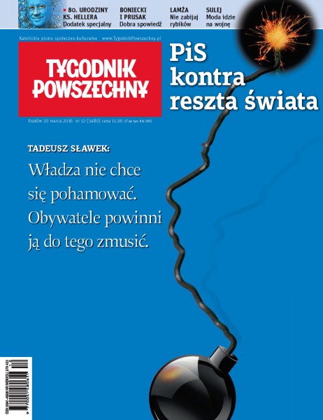 Walka rządu z Trybunałem może wywołać ostrą reakcję USA; na dobry koniec świata; książka, która poruszyła tabu polskiego Kościoła; nieznana homilia na Niedzielę Palmową; wielkopostne medytacje biblijne; dlaczego trójpodział władzy jest nienaruszalną wartością; PiS nie panuje nad sytuacją; jak ulżyć Unii i uchodźcom; kolejny kraj Europy zamyka granice przed uchodźcami; Słowacja – niedawno faszysta, dziś poseł; Kazachstan – ciąg dalszy stagnacji; uratowany z Zagłady dzięki Polakom; życie w zakamarkach łazienki; dlaczego moda idzie na wojnę; jak kłótnie nakręcają Polskę; po II wojnie – wyzwoleni i niechciani.