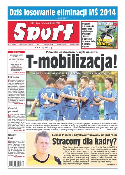 Wydział Dyscypliny zastosował kary bezwzględnej dyskwalifikacji wobec piłkarzy zamieszanych w ustawienie meczu Cracovia – Zagłębie Lubin w 2006 roku; zabrzanie dogadali się wczoraj z Wisłą Kraków w sprawie transferu pomocnika Krzysztofa Mączyńskiego; Konrad Czerniak miał drugi czas w półfinale na 100 m delfinem i o złoto powalczy z Michaelem Phelpsem; Jastrzębski Węgiel ogłosił skład zespołu na nadchodzący sezon; Piotr Małachowski zajął drugie miejsce w konkursie rzutu dyskiem w jedenastym mityngu Diamentowej Ligi w Sztokholmie.