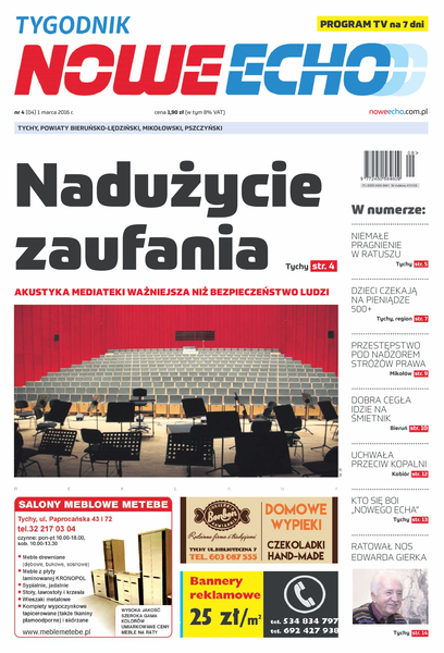 Jeśli naprawdę chcesz wiedzieć co dzieje się w Tychach oraz w gminach powiatów: bieruńsko-lędzińskiego, mikołowskiego i pszczyńskiego – kup dwutygodnik „Nowe Info”. Tu znajdziesz autorskie artykuły o sprawach, których inni unikają.