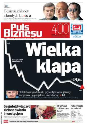 Fatalny debiut Azotów Tarnów: -19,7%, Ministerstwo Gospodarki proponuje nową ustawę o inwestycjach w ramach PPP, rekordowo mocny złoty, zmiana warty i nowa rada w V&W, Netia podpisała umowę kupna polskiego Tele2, Axel Springer złożył ofertę kupna "Rzeczpospolitej", Agencja Mienia Wojskowego ma atrakcyjne tereny na sprzedaż, mimo bessy OFE Polsat kupuje akcje na giełdzie.