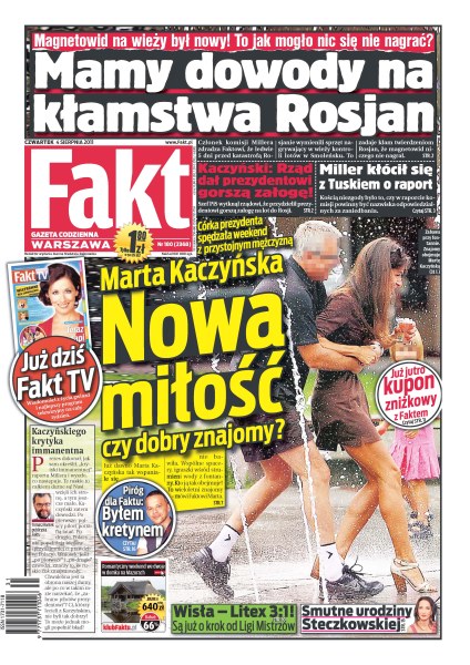 Czy Marta Kaczyńska znalazła nową miłość; dlaczego MAK udaje, że pewne fragmenty stenogramu nie istnieją; przez lipcowe ulewy zboże gnije na polu – czy przez to chleb zdrożeje; kto zrobił podkop w Bolesławcu; dlaczego Szpak może tańczyć w sukience; dlaczego Justyna Steczkowska miała smutne urodziny; dzisiaj rewanżowe spotkania 3. rundy eliminacji Ligi Europy – Legia gra u siebie z Gaziantepsporem, a Śląsk zmierzy się w Sofii z Lokomotiwem.