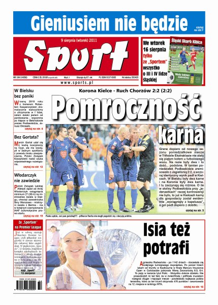 Poniedziałkowe mecze ekstraklasy nie wprowadziły takiego zamieszania jak przewidywano, wczoraj korona Kielce zremisowała z Ruchem Chorzów 2:2; wracający do ekstraklasy po dwóch latach przerwy ŁKS robi postępy, tym razem stracił „zaledwie” cztery bramki; Polska może się uczyć od Cypru – tamtejszy futbol rośnie w siłę; Barcelona i Real w ciągu czterech dni zagrają dwa „klasyki” o Superpuchar Hiszpanii.