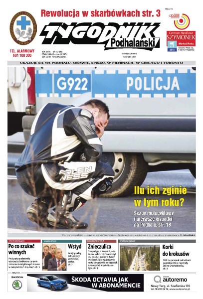 Szarpali go, przewrócili, a na koniec jeden z nich naskoczył mu na rękę, łamiąc w dwóch miejscach – nikt z patrzących na to kolegów nie zareagował, a nauczycieli w pobliżu nie było; Prokuratura odmówiła wszczęcia śledztwa w sprawie zniszczenia zabytkowych krosien w zakopiańskich Szpulkach, bo odpowiedzialni za to barbarzyństwo nie są zainteresowani szukaniem sprawców; koszmar pani Krystyny– mieszka w ruinie na tyłach Krupówek, w nocy ktoś dużymi kamieniami wybił jej szyby w oknach; basen, lodowisko, sale gimnastyczne - to także obiekty, na których miasto chce zarabiać; radni z Krościenka, Czorsztyna i Łapsz Niżnych przeciwni stawce, jaką za ścieki proponuje PPK – wyciągajcie swój majątek z wszystkimi obciążeniami i radźcie sobie sami – odpowiada prezes spółki.
