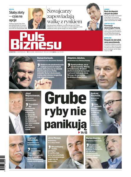 Analitycy chwalą spółkę Forte, która zabezpieczyła przed zmianą kursu złotego 80 mln zł przychodów; Narodowy Bank Szwajcarii chce mocno wkroczyć na rynek walutowy w celu osłabienia franka; co grube ryby polskiego biznesu myślą o aktualnej sytuacji na światowych giełdach; Niemcy idą śladem Francuzów z Carrefoura: od września wprowadzą ograniczenia dotyczące merchandiserów; producenci biopaliw dostaną po kieszeni: tegoroczne krajowe plony surowca niezbędnego do produkcji estrów będą mizerne.