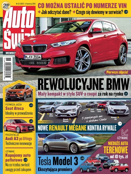 Nowości BMW – X2 i inne SUV-y; Skoda Vision S – prezentacja dużego SUV-a z Czech; Audi A3 – kompakt segmentu premium po face liftingu; Seat Ateca – wrażenia z jazd pierwszym SUV-em Seata; Ford Focus, Honda Civic, Hyundai i30, Opel Astra i Renault Mégane – porównanie pięciodrzwiowych hatchbacków; Peugeot 308 – start testu długodystansowego; Subaru Forester – SUV po face liftingu z 241-konnym bokserem; Citroën Grand C4 Picasso – czytelnicy testują 7-osobowego vana z dieslem 2.0.