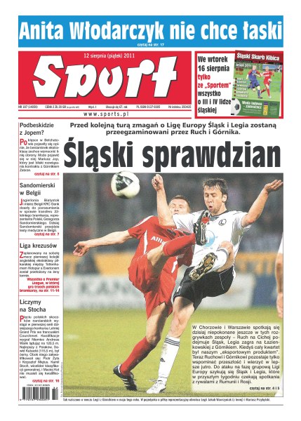 Przed kolejną turą zmagań o Ligę Europy Śląsk Wrocław i Legia Warszawa zostaną przeegzaminowane przez Ruch i Górnika; Wojciech Szczęsny będzie w Arsenalu bramkarzem numer jeden; gdzie jest dziś miejsce polskiej reprezentacji piłkarskiej; dziś na olimpijskim obiekcie odbędzie się piaty indywidualny konkurs w ramach Letniej Grand Prix w skokach narciarskich; Anita Włodarczyk zamknęła usta niedowiarkom z Polskiego Związku Lekkiej Atletyki.