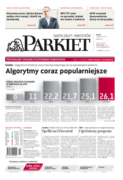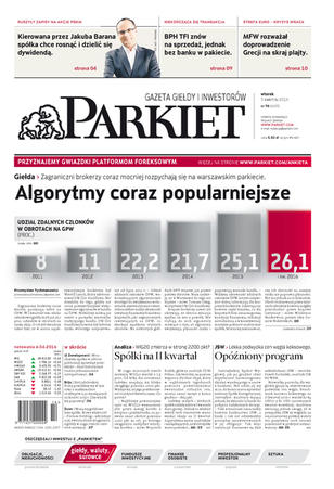 Największy w Polsce newsroom gospodarczy zbiera, analizuje i zgłębia dla Państwa najważniejsze informacje ze świata finansów. Codzienne wydanie „Parkietu”, sześć dni w tygodniu, to kilkadziesiąt artykułów o emitentach, instytucjach finansowych, gospodarce. To również opinie, felietony i wywiady z najważniejszymi ludźmi krajowej i globalnej finansjery.