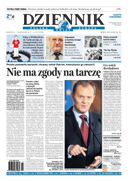 Rząd odrzuca ofertę Amerykanów - nie ma zgody na tarczę antyrakietową; kim jest Michał Borowski; młodzi Żydzi dzisiaj; reportaż o życiu polskich emigrantów w Londynie; rozmowa z naczelnym rabinem Polski, Michaelem Schudrichem; w co grają działacze PZPN; The Sex Pistols w Polsce.
