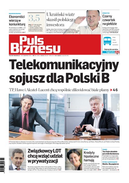 W naszym kraju powstaje telekomunikacyjny triumwirat, który może zbudować szerokopasmową sieć w Polsce Wschodniej i zainkasować 6 mld zł; kryzys nauczył klientów banków rozwagi – w pierwszym półroczu banki pożyczyły niespełna połowę tego, co w całym 2010 r.; Sejm niewiele już zrobi dla, biznesu przedsiębiorcy mogą najwyżej liczyć, że parlament przegłosuje deregulację bis.