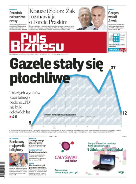 Jak się uchronić przed stratami na giełdzie; Krauze i Solorz–Żak rozmawiają o Porcie Praskim; załoga Anwilu tworzy komitet, który ma bronić producenta nawozów i PCW przed podziałem; rośnie odsetek firm, które chcą ciąć inwestycje i redukować zatrudnienie; dlaczego ustawa antyspreadowa, którą promował wicepremier Waldemar Pawlak, stwarza mnóstwo problemów interpretacyjnych.
