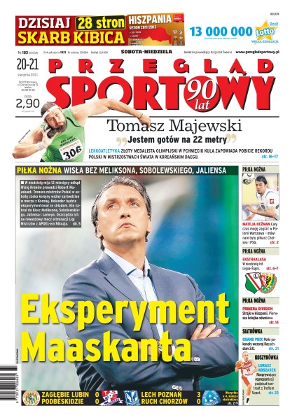 W niedzielę mija 12 miesięcy odkąd Wisłę Kraków prowadzi Robert Maaskant – trener mistrza kraju zamierza mocno eksperymentować ze składem; Tomasz Majewski zapowiada, że jest w świetnej formie i może osiągnąć 22 metry; w niedzielę hit ekstraklasy – Legia Warszawa podejmie Śląsk Wrocław; polskie siatkarki łatwo pokonały reprezentację Kazachstanu 3:0.