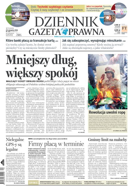 Dziennik Gazeta Prawna – codziennie obiektywne i rzetelne informacje z kraju i ze świata. Piszemy o tym, co dziś ważne i odpowiadamy na Wasze pytania – szczególnie te związane z obecnymi wyzwaniami tj. pandemia, praca zdalna. Na bieżąco wyjaśniamy zmieniające się przepisy. Wspieramy się wyjaśnieniami ministerstw i urzędów. Pomagamy unikać błędów i ostrzegamy, jakie są kary. Ponadto w każdy piątek specjalne magazynowe wydanie Dziennika Gazety Prawnej w całości z tekstami społeczno-ekonomicznymi.