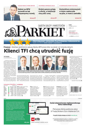 Największy w Polsce newsroom gospodarczy zbiera, analizuje i zgłębia dla Państwa najważniejsze informacje ze świata finansów. Codzienne wydanie „Parkietu”, sześć dni w tygodniu, to kilkadziesiąt artykułów o emitentach, instytucjach finansowych, gospodarce. To również opinie, felietony i wywiady z najważniejszymi ludźmi krajowej i globalnej finansjery.