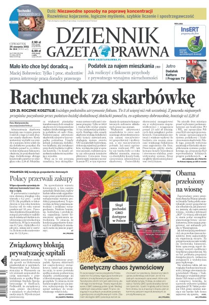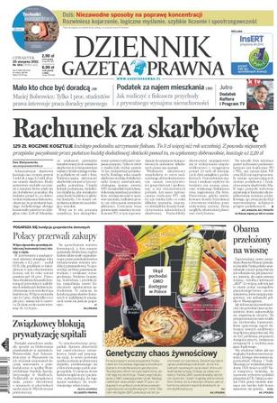 Dlaczego tylko 1 proc. studentów prawa interesuje praca doradcy prawnego; jak rozliczyć z fiskusem przychody z prywatnego wynajmu nieruchomości; 129 zł rocznie kosztuje każdego podatnika utrzymanie fiskusa; w lipcu dynamika sprzedaży detalicznej hamowała trzeci miesiąc z rzędu; po wczorajszym wecie prezydenta Polska nadal nie ma ustawy regulującej handel produktami zmodyfikowanymi genetycznie.