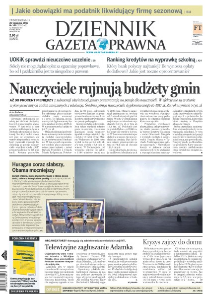 Nauczyciele rujnują budżety gmin; UOKiK sprawdzi nieuczciwe uczelnie; ranking kredytów na wyprawkę szkolną; telewizyjne zagłuszanie walki Adamka; kryzys zajrzy do domów – wolniejszy wzrost gospodarczy przełoży się bezpośrednio na wyższe bezrobocie; jakie obowiązki ma podatnik likwidujący firmę sezonową; nobliści i politycy rozważają, czy kryzysom można zapobiec.