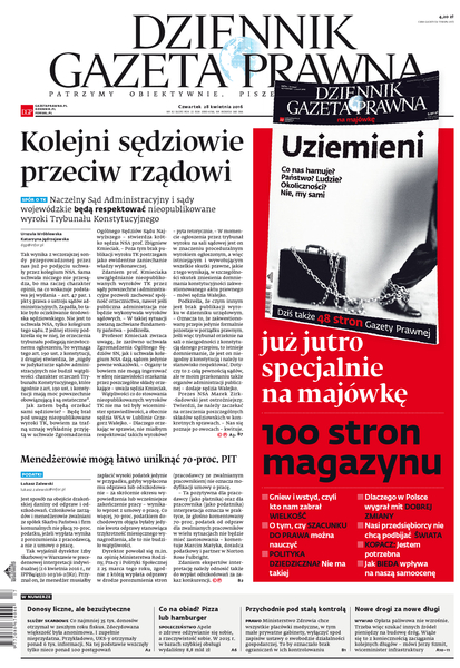 Gazetę wzbogacają praktyczne dodatki dla specjalistów, niedostępne w kioskach: Księgowość i Podatki, Rachunkowość i Audyt, Firma i Prawo, Samorząd i Administracja, Prawnik, Kadry i Płace, Ubezpieczenia i Świadczenia. NOWOŚĆ 2021 r. dodatki Biuro Rachunkowe i Księgowość Budżetowa (dostępne raz w miesiącu). Dodatkowo publikujemy wyjątkowo cenione przez Czytelników specjalne dodatki dotyczące najważniejszych zmian, nowych rozwiązań, na gorąco odpowiadamy na pytania. Piszemy o pracy zdalnej, o tarczach antykryzysowych, o nowych przepisach do walki z epidemią, o sposobach walki z zatorami płatniczymi i nowych obowiązkach pracodawców. Zapewniamy bezpieczeństwo w stosowaniu zmieniającego się prawa.
