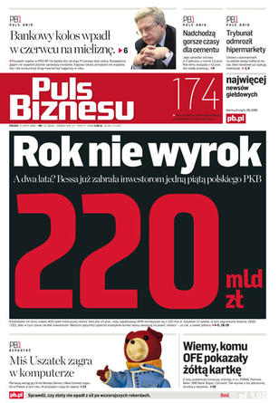 Nie najlepsze wyniki PKO BP pod zarządem nowego prezesa, ale nie ma powodów do paniki; Trybunał Konstytucyjny orzekł o niezgodności ustawy ograniczającej swobodę tworzenia wielkich sklepów z konstytucją; Getin wchodzi w rynek usług maklerskich dla ludności; niedawna zmiana dotycząca rozliczeń z ZUS po raz kolejny odsuwa upowszechnienie podpisu elektronicznego; roczna bessa zabrała inwestorom już 220 mld zł, jedną piątą krajowego PKB; gra z Misiem Uszatkiem ma szansę podbić japoński rynek.