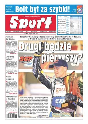 Jarosław Hampel podczas żużlowej Grand Prix Polski w Toruniu odrobił pięć punktów do Grega Hancocka; faworyt sprintu wykluczony – Bolt był za szybki; tylko jednego seta wygrała reprezentacja polskich siatkarzy w IX Memoriale Huberta Wagnera; Robert Kubica przeszedł w niedzielę ostatnią operację prawego łokcia; Agnieszka i Urszula Radwańskie rozpoczną dziś w nocy siostrobójczy pojedynek w US Open.