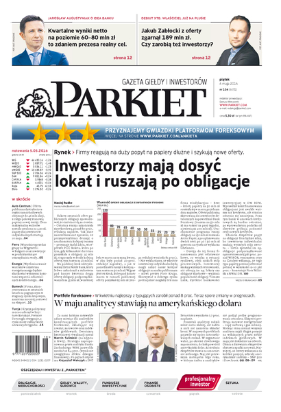 Największy w Polsce newsroom gospodarczy zbiera, analizuje i zgłębia dla Państwa najważniejsze informacje ze świata finansów. Codzienne wydanie „Parkietu”, sześć dni w tygodniu, to kilkadziesiąt artykułów o emitentach, instytucjach finansowych, gospodarce. To również opinie, felietony i wywiady z najważniejszymi ludźmi krajowej i globalnej finansjery.