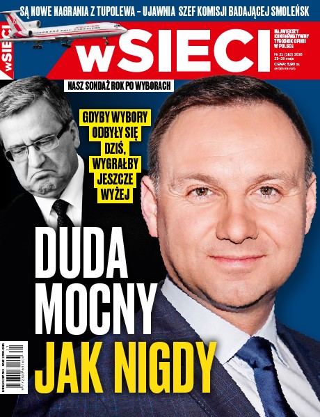 Z sondażu wynika, że gdyby dziś ponownie w II turze wyborów prezydenckich spotkali się Bronisław Komorowski i Andrzej Duda, ten drugi wygrałby z jeszcze większą przewagą; rozmowa ze Sławomirem Kmiecikiem, dziennikarzem, publicystą, autorem książek „Przemysł pogardy”, „Przemysł pogardy 2” i „Cel: Andrzej Duda”; dlaczego rząd w Berlinie nie chce przywrócić niemieckim Polakom bezprawnie odebranego statusu mniejszości; Eurowizja: czy estrada może być polem bitwy, piosenkarze mogą być wojownikami, a utwory wystrzeliwanymi pociskami; w jakich obszarach małe i średnie firmy mogą dostać dofinansowanie z Funduszy Europejskich; Wacław Berczyński, szef komisji badającej przyczyny katastrofy smoleńskiej, o nowych dowodach i planach działania.