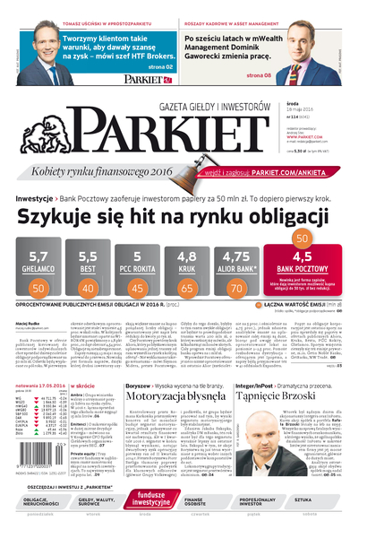 Największy w Polsce newsroom gospodarczy zbiera, analizuje i zgłębia dla Państwa najważniejsze informacje ze świata finansów. Codzienne wydanie „Parkietu”, sześć dni w tygodniu, to kilkadziesiąt artykułów o emitentach, instytucjach finansowych, gospodarce. To również opinie, felietony i wywiady z najważniejszymi ludźmi krajowej i globalnej finansjery.
