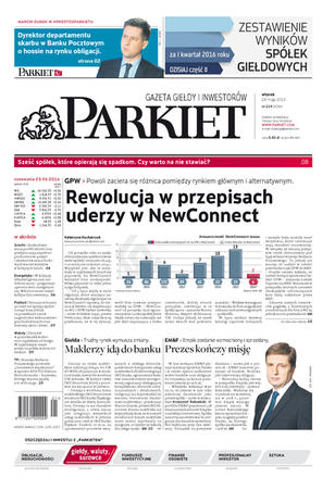 Gazeta Giełdy i Inwestorów Parkiet przyspiesza publikację e-wydania. Od poniedziałku, już od godz. 20.00, można kupić i przeczytać e-wydanie Parkietu, które w wersji papierowej ukaże się dopiero następnego dnia. Parkiet jest więc najświeższą gazetą finansową w Polsce.