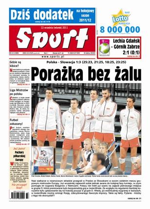 Polscy siatkarze w rezerwowym składzie przegrali w Pradze ze Słowakami w swoim ostatnim meczu grupowym mistrzostw Europy; rozpoczął się nowy sezon polskiej ligi hokejowej; zespoły walczące w koszykarskich mistrzostwach Europy zakończyły drugą część rozgrywek; Samantha Stosur pokonała Serenę Williams w finale US Open; bracia Kliczko długo jeszcze pozostaną niepokonani.