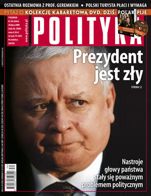 Ostatnia rozmowa z prof. Geremkiem; emocje prezydenta Kaczyńskiego; temat tygodnia: afera w Sopocie; raport Polityki: biura podróży walczą o polskiego turystę; Romowie w Europie bez granic; przekręty na krakowskim rynku nieruchomości; Katarzyna Butowtt poleca wakacje w Norwegii; reportaż: afgańscy sportowcy przed olimpiadą.