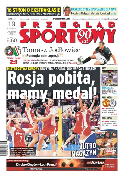 Rosja pobita – mamy medal – drużyna Anastasiego wraca z brązem; Polonia po świetnej grze w drugiej połowie wygrała z Legią w czasie derbów Warszawy; Unia Leszno w finale po wygranej rywalizacji z Unibaksem; dramatyczny uraz Tytonia w meczu PSV - Ajax; Merlene Ottey podziwia Małysza i kibicuje Kowalczyk.
