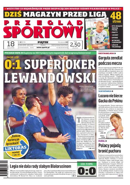 Lewandowski zapewnił Lechowi zwycięstwo w Baku; Legia zremisowała z Białorusią 0:0; Łukasz Garguła zemdlał podczas meczu; Piotr Gacek nie pojedzie na igrzyska; nasi żużlowcy awansowali do finału Drużynowego Pucharu Świata; rozmowa z Marią Liktoras; Riccardo Ricco przyłapany na dopingu. Dodatki: Tempo TV