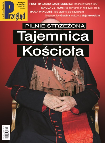 Pilnie strzeżona tajemnica polskiego Kościoła; rozmowa z prof. Ryszardem Szarfenbergiem; siostrzeniec Gowina chce odwołać prezydenta; szwaczki zapłacą za prywatyzację; dlaczego niełatwo być polską muzułmanką; Świdnica ciekawa świata; rozmowa z Dominiką Blachnicką-Ciacek; posprząta po Brexicie - nowa żelazna dama czy naiwna liderka; od sufrażystek do Hillary Clinton; korespondencja z Zurychu; Rio w kryzysie przed olimpiadą; reprezentacja na czwórkę z plusem; rozmowa z Marią Pakulnis; Magda Jethon o radiowej Trójce; państwo nie jest własnością elit; zastępowanie natury - uciszyć burzę w kobiecym organizmie.