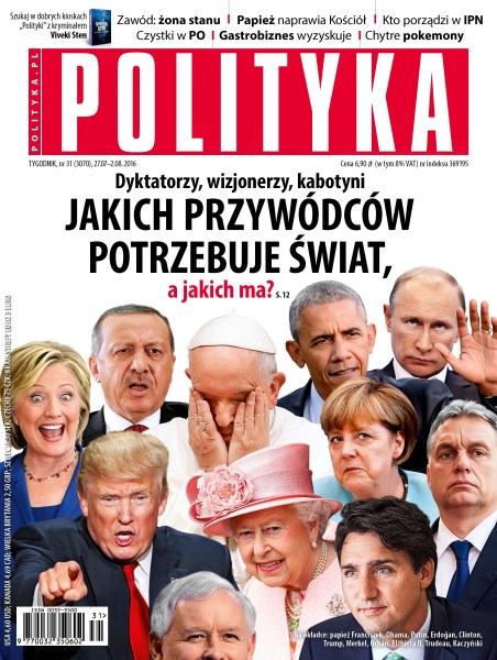 Jacy przywódcy na te czasy; czyszczenie Platformy; teolożka Halina Bortnowska o wizycie papieża Franciszka i lękach polskich hierarchów; historyk prof. Andrzej Paczkowski o polityce pamięci i IPN pod rządami PiS; kim jest nowy prezes IPN; zawód: żona prezydenta; gastrobiznes od kuchni; jak zostać ojcem chrzestnym mafii; Thomasem Straubhaarem o tym, jak zorganizować Europę przyszłości, w której będzie nas wszystkich coraz mniej; Turcja – państwo inne niż wyobrażenia Zachodu.