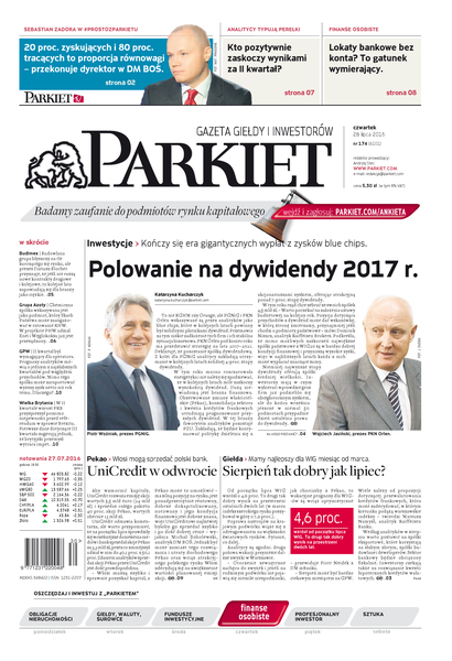 Największy w Polsce newsroom gospodarczy zbiera, analizuje i zgłębia dla Państwa najważniejsze informacje ze świata finansów. Codzienne wydanie „Parkietu”, sześć dni w tygodniu, to kilkadziesiąt artykułów o emitentach, instytucjach finansowych, gospodarce. To również opinie, felietony i wywiady z najważniejszymi ludźmi krajowej i globalnej finansjery.