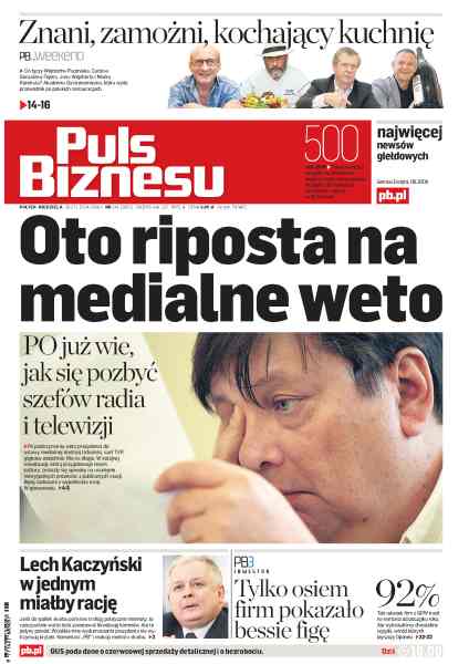 Pomimo weta prezydenta do ustawy medialnej zarządy TVP i Polskiego Radia będzie można odwołać - jeśli misyjność programu nie uzyska akceptacji rady programowej, plany Ministerstwa Gospodarki dotyczące stref ekonomicznych, wiceminister skarbu przyznaje, że Polska zapłaci Eureko za spór o PZU, wielka fuzja - Mlekpol przejmuje RSM Rolmlecz, przeboje roku - Oponeo i inne spółki, które oparły się bessie.