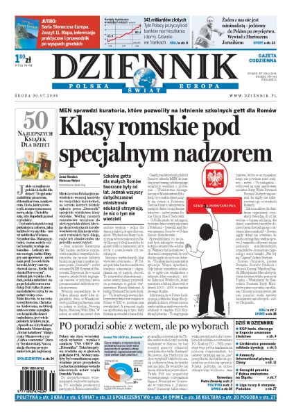 MEN twierdzi, że nie wiedział o romskich klasach w szkołach; Polacy w czerwcu zadłużyli się na 5 mld złotych, kupując mieszkania; przeciwnicy proeuropejskich władz chcą wymusić sądzenie Radovana Karadżicia w ojczyźnie; najnowszy raport Amnesty International o łamaniu praw człowieka przez chińskie władze; znane postacie życia publicznego – ludzie kultury, mediów i naukowcy – polecają swoje ulubione lektury młodości; naukowcy odkryli, że na naszą wagę wpływa architektura otoczenia, w którym mieszkamy.