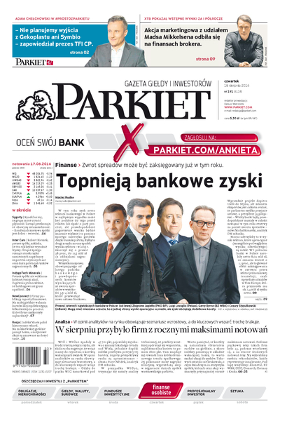 Największy w Polsce newsroom gospodarczy zbiera, analizuje i zgłębia dla Państwa najważniejsze informacje ze świata finansów. Codzienne wydanie „Parkietu”, sześć dni w tygodniu, to kilkadziesiąt artykułów o emitentach, instytucjach finansowych, gospodarce. To również opinie, felietony i wywiady z najważniejszymi ludźmi krajowej i globalnej finansjery.