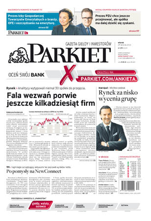Największy w Polsce newsroom gospodarczy zbiera, analizuje i zgłębia dla Państwa najważniejsze informacje ze świata finansów. Codzienne wydanie „Parkietu”, sześć dni w tygodniu, to kilkadziesiąt artykułów o emitentach, instytucjach finansowych, gospodarce. To również opinie, felietony i wywiady z najważniejszymi ludźmi krajowej i globalnej finansjery.